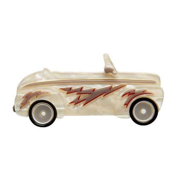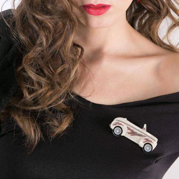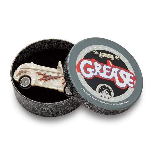 And you could even be ultramatic with this limited production Greased Lightning hot rod brooch from the Erstwilder Grease collection. No Scorpion will be able to touch you behind the wheel of this bad-boy. Hand assembled from a combination of textured and solid resins, with hand-finished details.