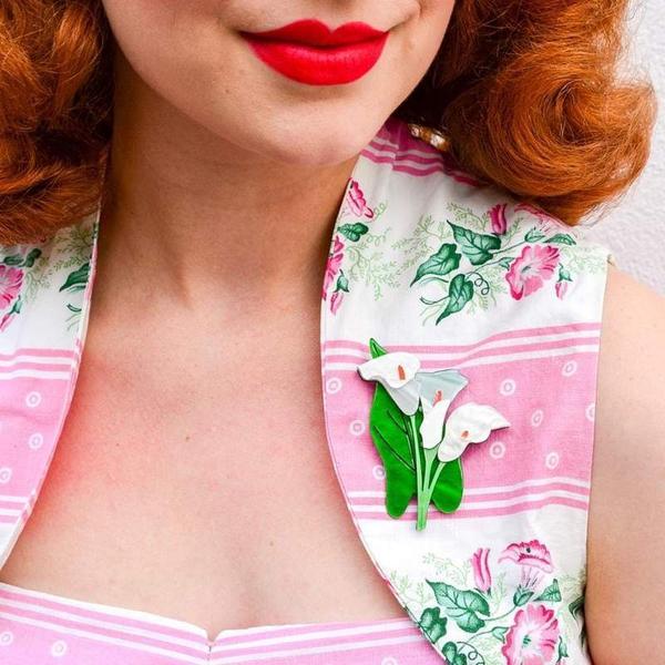 Cultivate your fashion sense with our captivating Calla Lily brooch. Hand-assembled from stunning textured and bubble resins, with hand-finished details, this green goddess will have you feeling on top of the world.