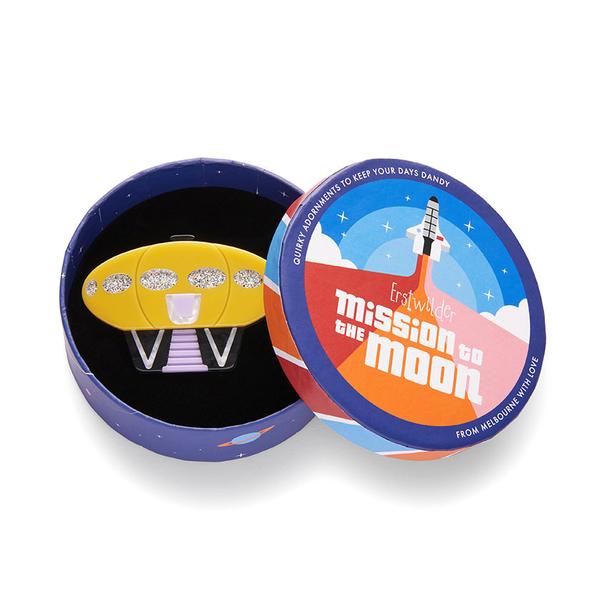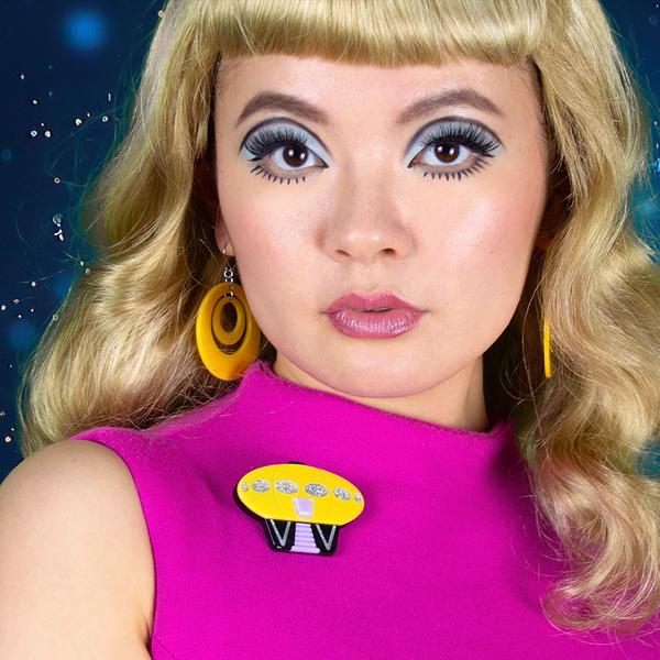 A fusion of fantastical resins bring this hand-assembled outer-space hotel brooch to life. Part of our Mission to the Moon range of out of this world accessories, Hotel Futura takes design inspiration from 1960s futurism, with some added Erstwilder quirk, and can be worn together with our Space Chic Souvenirs Double Brooch to complete that off-world holiday look.