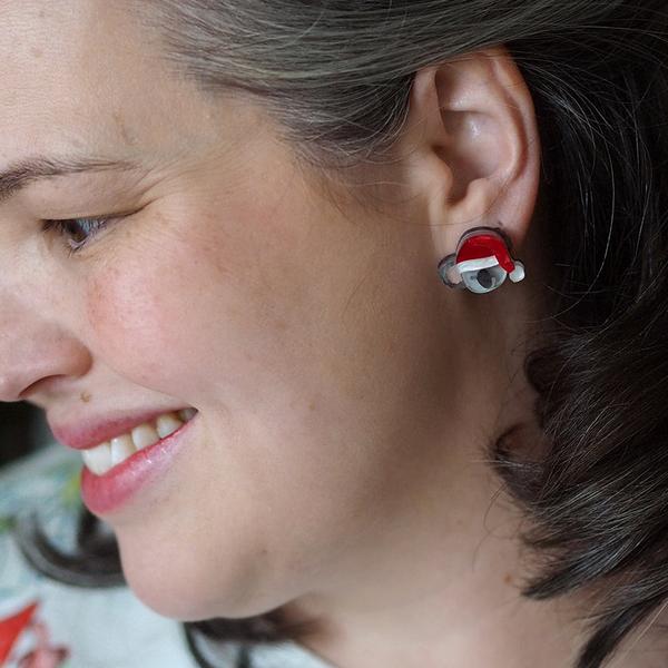 Decked out in an adorable Santa hat, these Christmas koala stud earrings have been hand-assembled from textured resins and feature hand-painted details.
