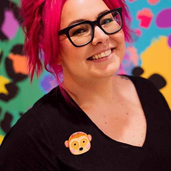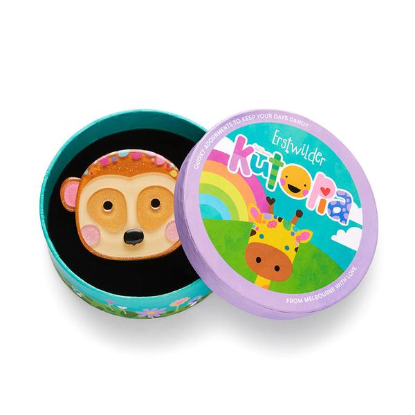 This Erstwilder x Kasey Rainbow Miah the Meerkat brooch has been hand-assembled from a combination of colourful resins and finished with hand-painted details. A resident of the wonderful world of Kutopia, Miah will help you make the most of every moment.
