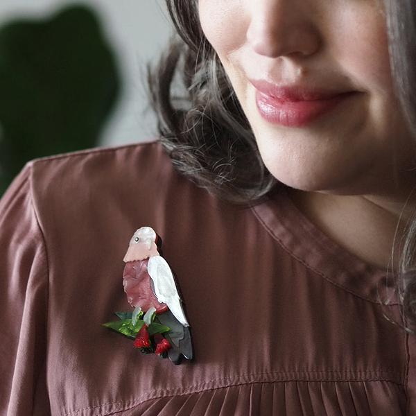 Vibrant pink resins are the highlight of this Australian galah brooch. And with so many of them making their presence known around the festive season, why not add one of these hand-assembled, hand-painted beauties to your outfit?