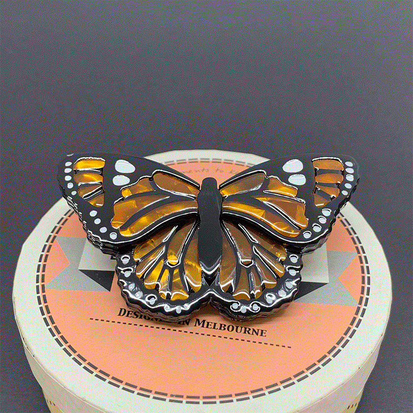 A butterfly flaps its resin wings and just like that, your outfit is complete. Hand-assembled from solid and textured resins, and featuring hand-painted details, pairing this beautiful brooch with our Prince of Orange earrings will have you feeling like royalty.