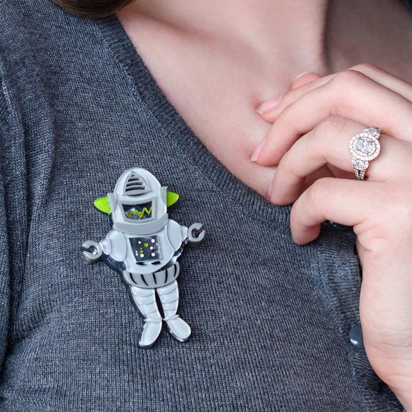 A metal man from Mars? A silver-being from a distant Sun? We wonder what he wants.