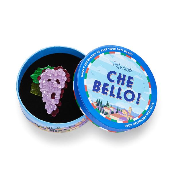 Celebrating the history, culture, fauna, and culinary delights of Italy, the Sangiovese Sun brooch has been created as part of the Che Bello! (How Beautiful!) collection. Hand-assembled from gorgeous purple and green textures resins and complete with etched and hand-painted detailing, this brooch will have you saying 'what a beautiful bunch!'.