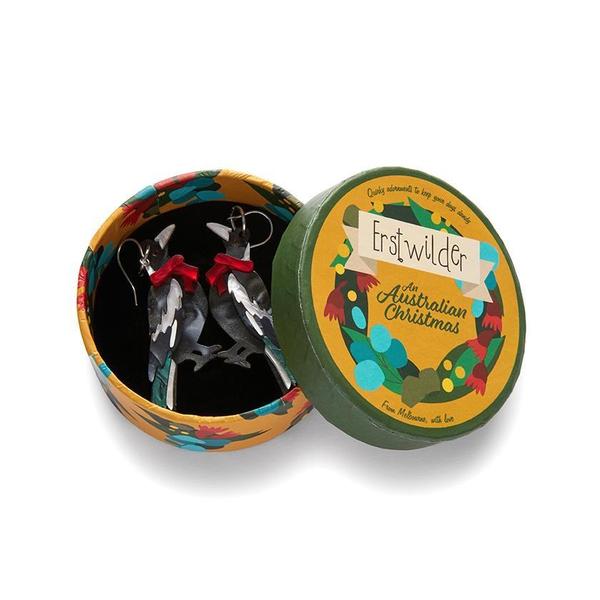 Brilliant black and white textured resins bring these Christmas magpie earrings to life. With hand-painted details and just a splash of colour, they'll add a little luck to your outfit.