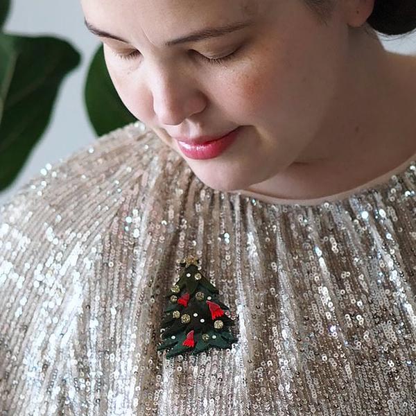 Not quite large enough to hang the ornaments from, this Christmas Tree brooch has been hand-assembled from terrific textures resins, and is really more of an ornament itself. An ornament for you outfit that is.